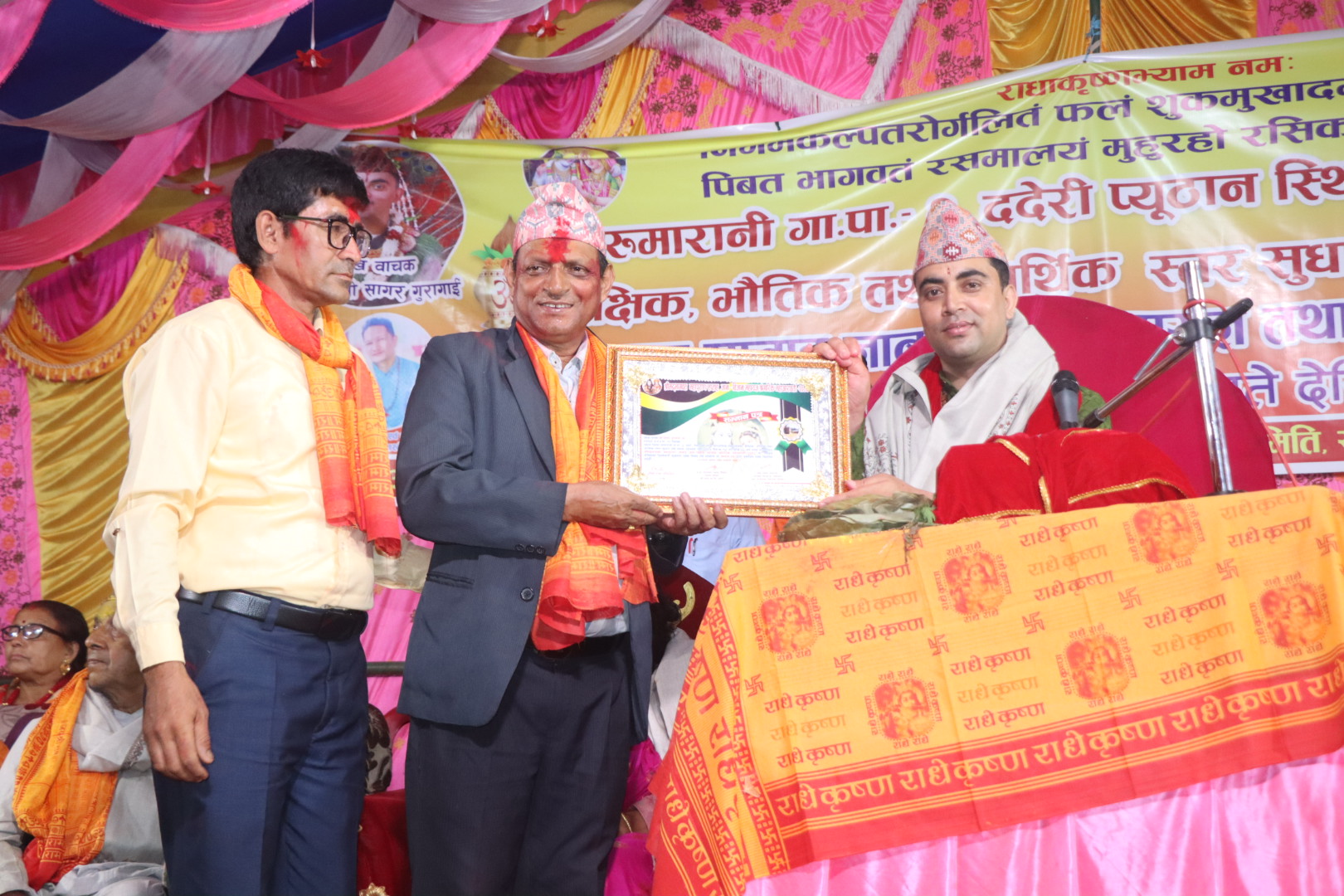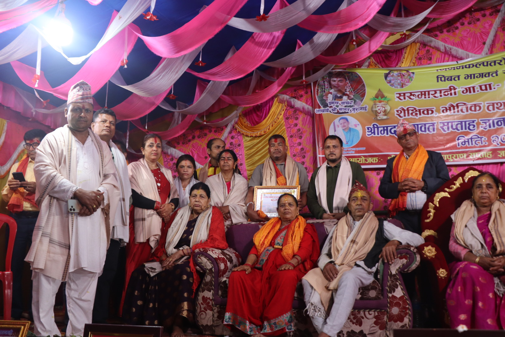 साे अवसरमा महायज्ञ मूल आयाेजक समितीका सदस्य तथा आर्थिक समिती संयाेजक बासुदेब पाेख्रेल र महायज्ञ मूल आयाेजक समितीका सदस्य सचिव तथा विद्यालयका प्रधानाध्यापक नारायणप्रसाद पाैडेल लगायतका बक्ताले मन्तव्य व्यक्त गरेका थिए। साे अवसरमा महायज्ञका प्रमुख कथाबाचक, उपबाचक, कलाकार, बाद्यबादक, पत्रकार लगायतलाई दाेसल्ला र सम्मान-पत्र सहित सम्मान गरिएकाे थियाे । उद्घाटन कार्यक्रम सहित आठ दिन सम्म चलेकाे महायज्ञको प्रमुख कथा बाचकमा नेपालकै चर्चित १८ पुराणका ज्ञाता युवा प्रविण बाचक श्रद्वय गुरू आचार्य श्री सागर गुरागाई सहित महायज्ञमा उपबाचक तथा श्रृङ्गारिक महाआरती प्रमुख मोहन शर्मा रहेका थिए। महायज्ञकाे उद्घाटन, समापन सहित आठै दिन सम्मकाे कार्यक्रमको सञ्चालन पत्रकार भानु जोशीले गरेका थिए।