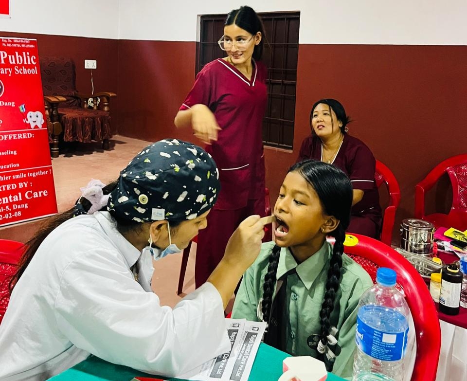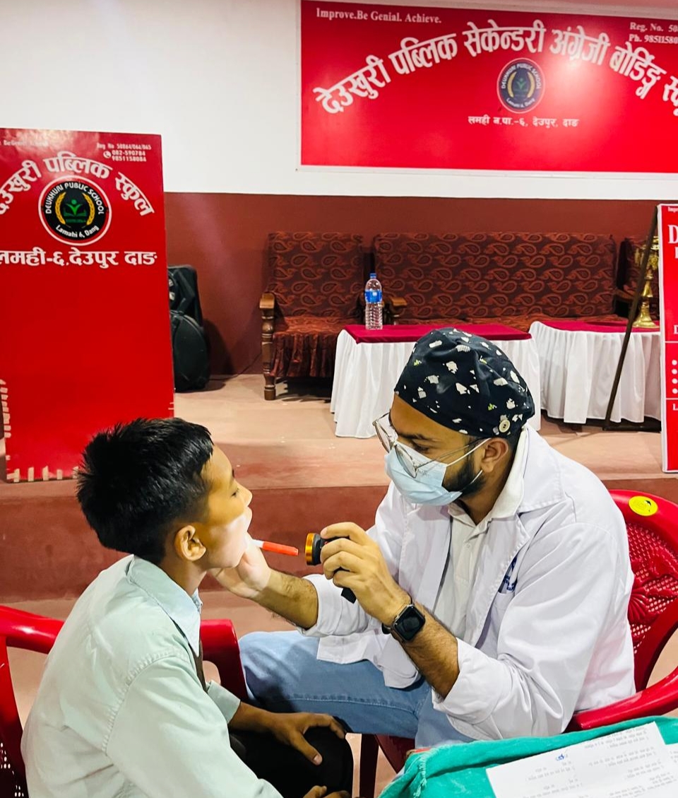 लमहीकाे देउखुरी पब्लिक स्कुलद्वारा विद्यार्थीहरुको दन्त परिक्षण