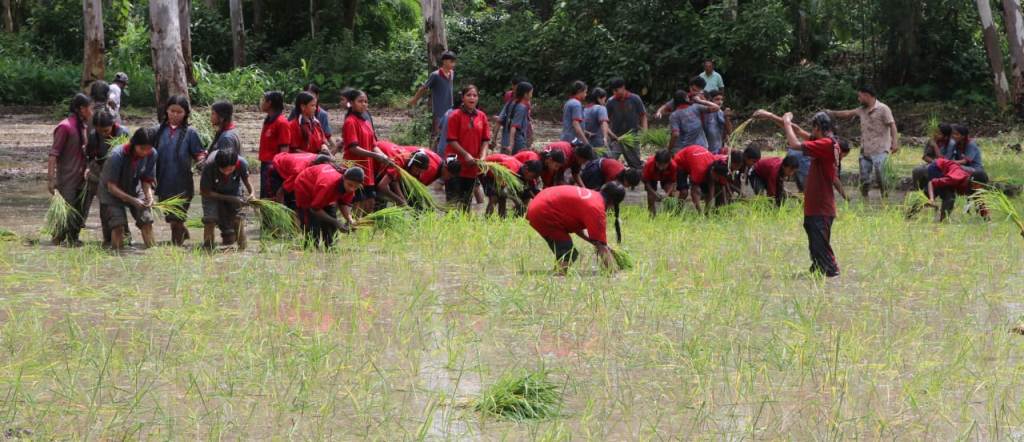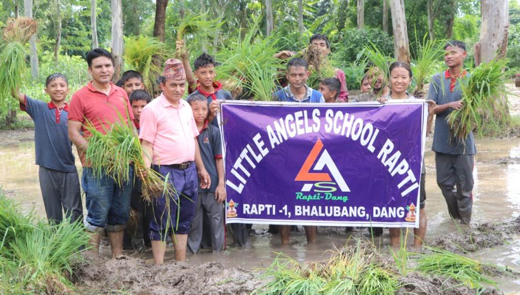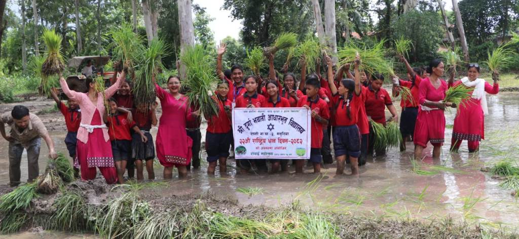 राप्ती गाउँपालिका वडा नम्बर ३ मा रहेको दुर्गा भवानी आधारभूत विद्यालय र वडा नम्बर १ भालुवाङस्थित लिटिल एन्जल स्कुलका विद्यार्थीहरूले असार १५ को अवसर पारेर दुर्गा भवानी आधारभूत विद्यालय मसुरियाको करिब पाँच कठ्ठा खेतमा सामूहिक रूपमा धान रोपेका हुन् ।