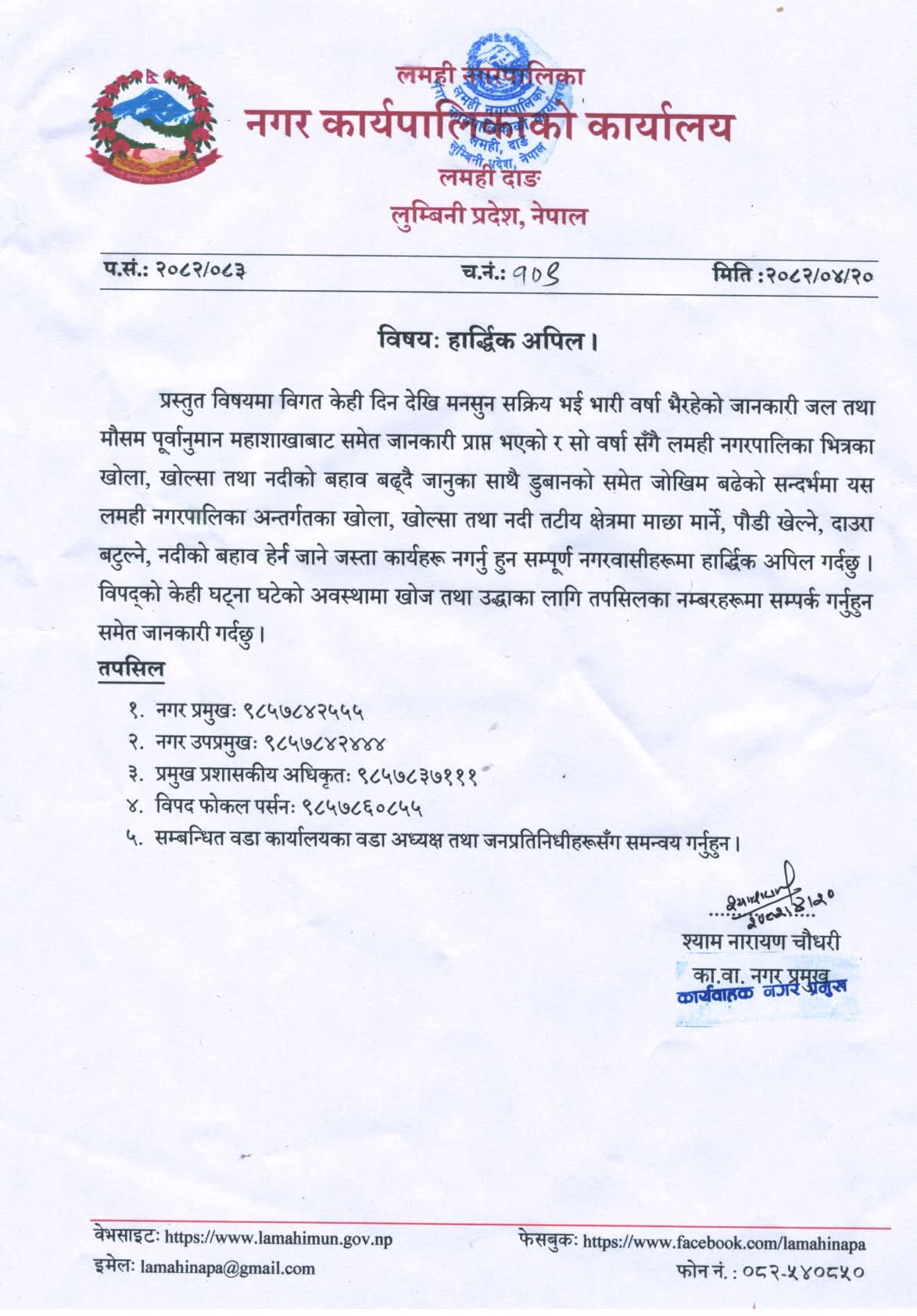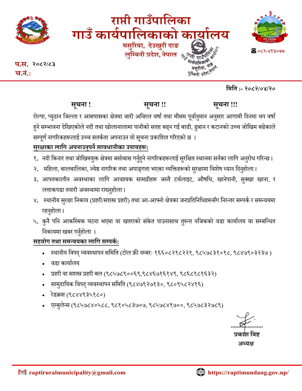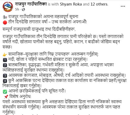 मनसुनजन्य विपद्बाट बच्न उच्च सतर्कता अपनाउन प्रशासन र स्थानीय पालिकाहरुकाे आग्रह
