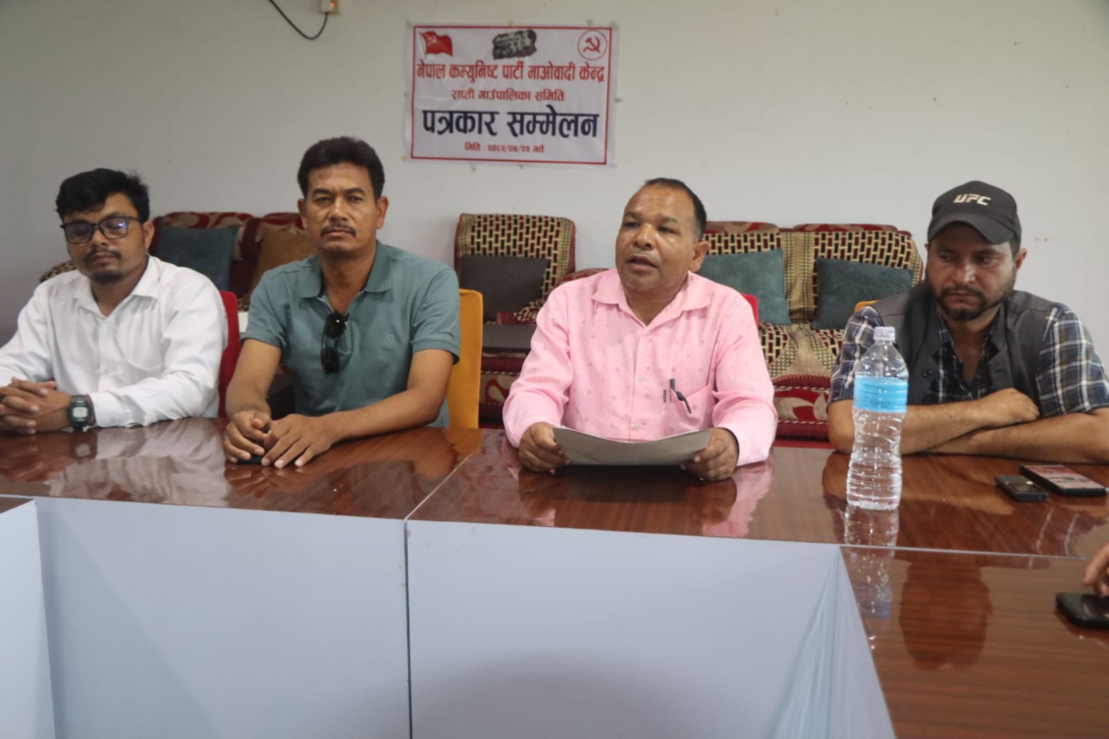 पार्टीका राप्ती गाउँपालिका कमिटी अध्यक्ष रणबहादुर पुजालीको अध्यक्षता तथा पार्टीका लुम्बिनी प्रदेश कमिटी सदस्य तथा राप्ती गाउँपालिका इन्चार्ज श्यामेश चौधरीको प्रमुख आतिथ्यतामा आयोजित पत्रकार सम्मेलनको सहजीकरण पार्टीका गाउँपालिका सचिव जगत बहादुर थापाले गरेका थिए ।