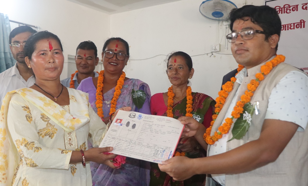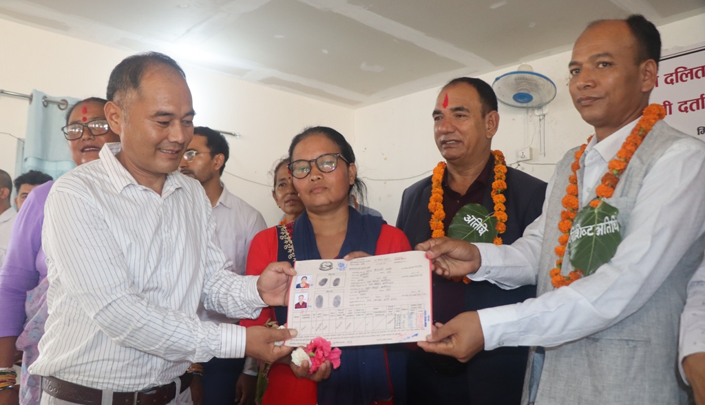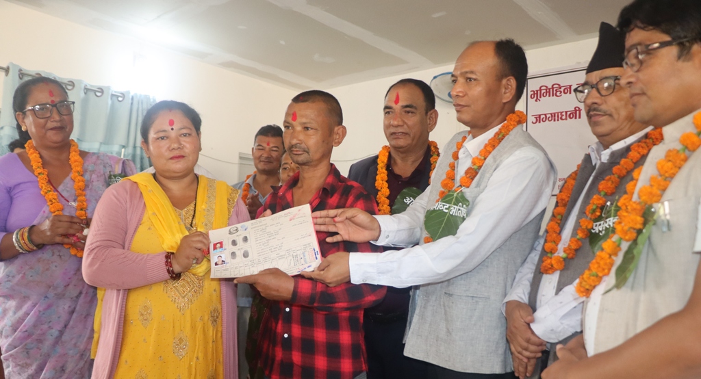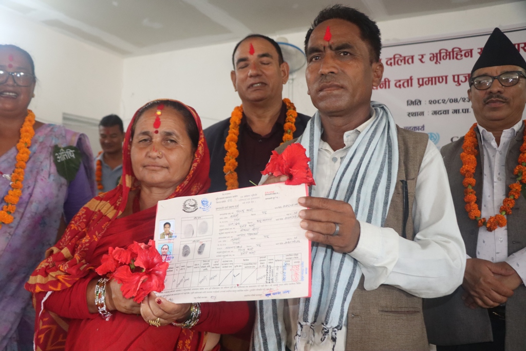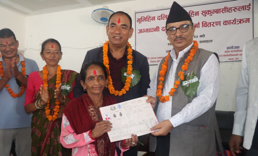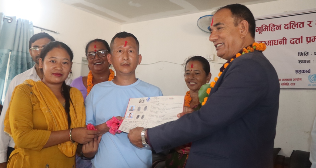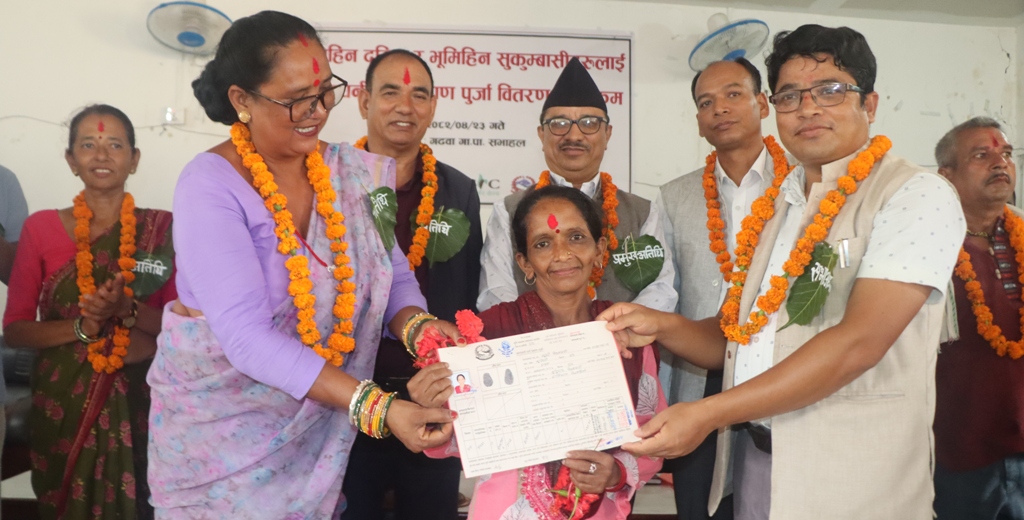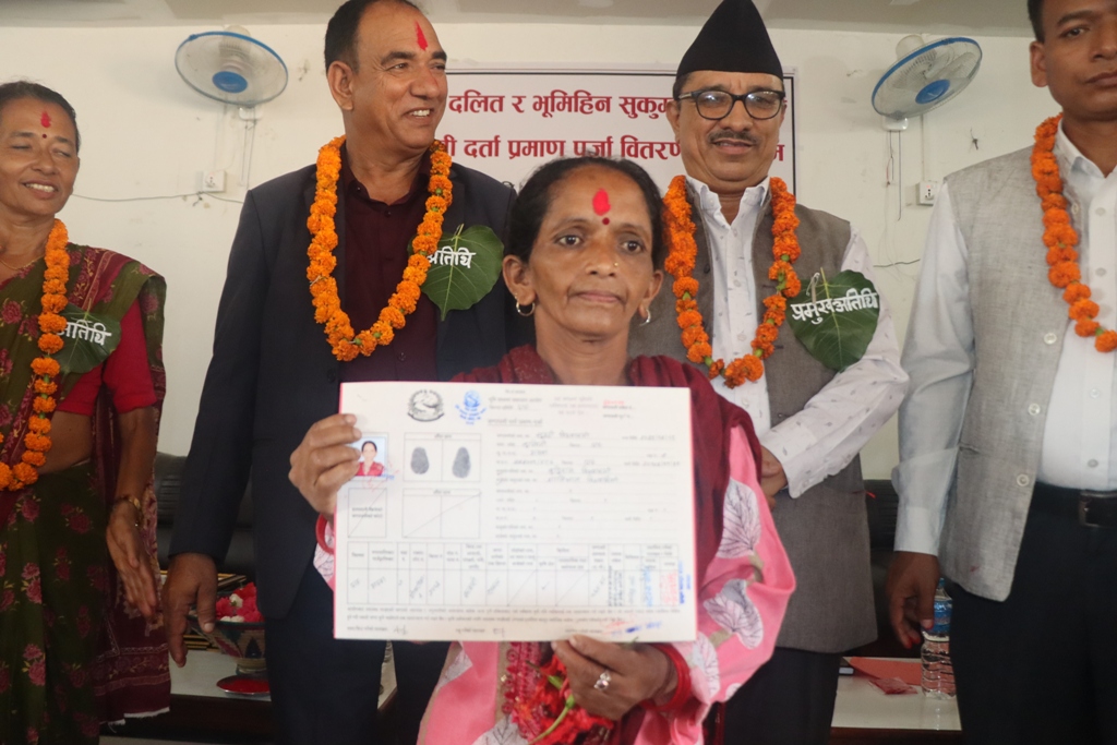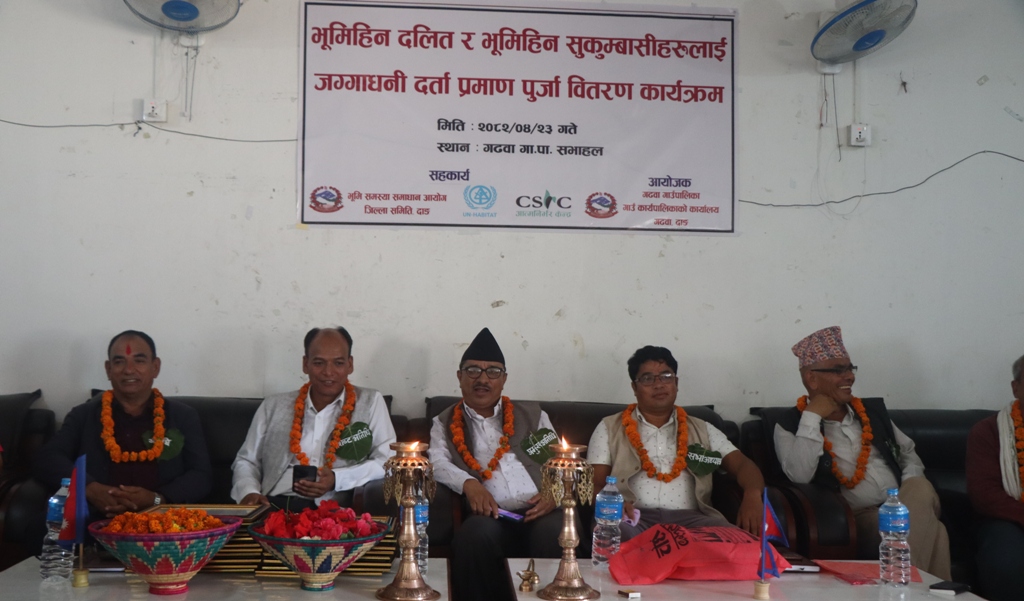 दाङकाे गढवामा ९ जना भूमिहिन दलित र सुकुम्बासीलाई लालपुर्जा वितरण
