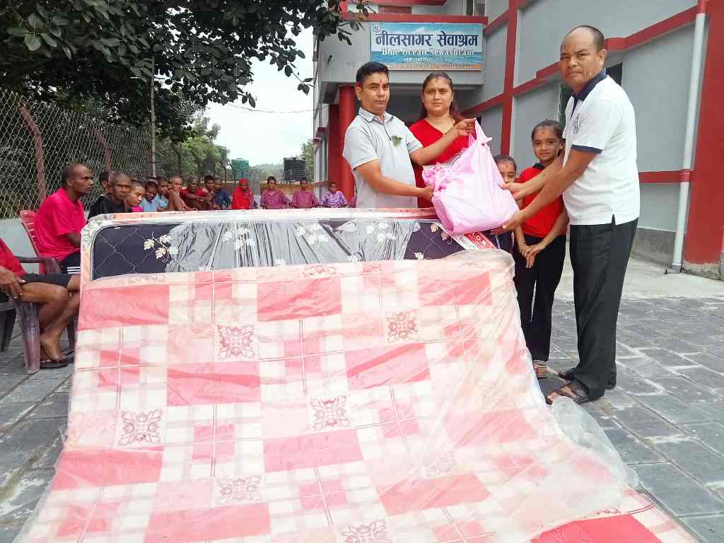 सिसहनियाँ २५ भदौ । दाङको राप्ती गाउँपालिका–५ प्रगतिनगर सिसहनियाँ निवासी अमृत अधिकारीले आफ्नो ३७ औं जन्म दिनका अवसरमा निलसागर सेवा आश्रममा म्याट्रेस र तन्ना सहयोग गरेका छन् ।