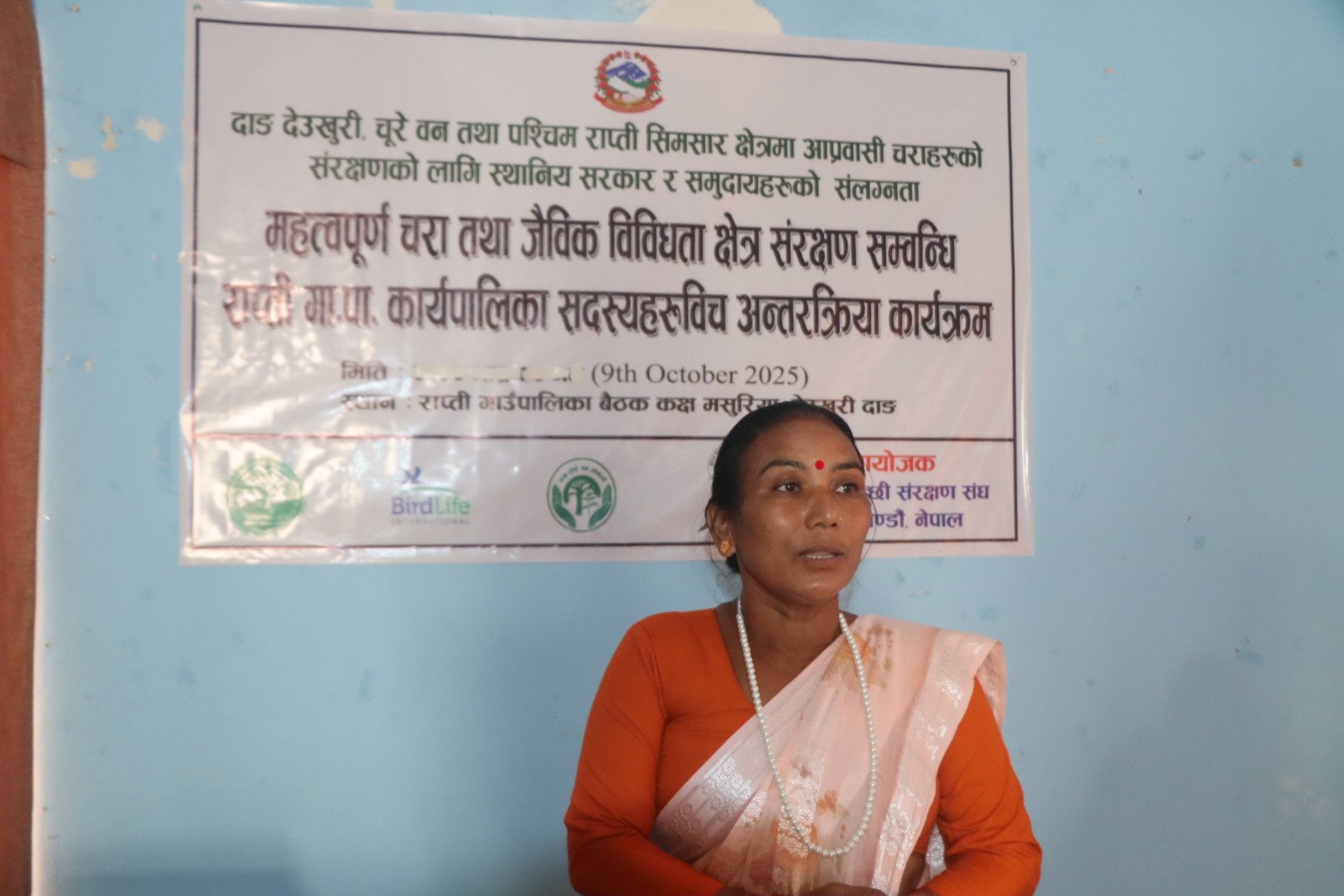 दाङकाे राप्तीमा आप्रबासी चरा संरक्षण परियाेजनाकाे बिषयमा जनप्रतिनिधिहरू संग अन्तरक्रिया