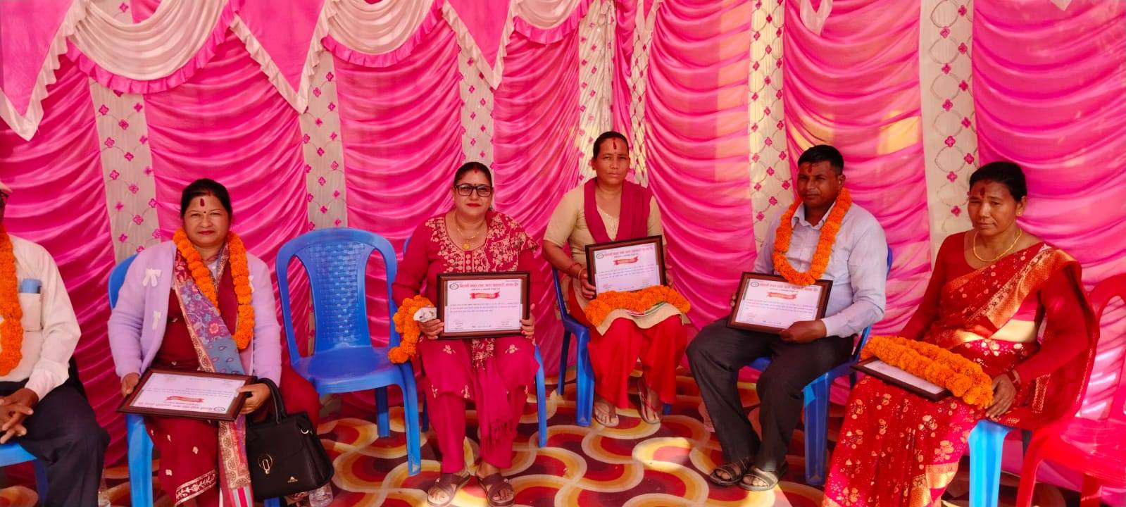 संस्थाका अध्यक्ष बामदेव चौधरीको अध्यक्षता एवम् संस्थाका सल्लाहकार देवप्रसाद चौधरीको प्रमुख आतिथ्यतामा सभा सम्पन्न भएको हो । सभामा १ दर्जन बढी व्यक्तित्वहरु सम्मानित भएका छन् । सम्मानित हुनेहरुमा असल बचतकर्ता तर्फ श्यामा चौधरी, विद्या बहादुर चौधरी, शिवेश कुमार चौधरी रहेका छन् । त्यस्तै मोबाइल बैकिङ कारोबार तर्फ अजोधी चौधरी, उत्कृष्ट कारोबार तथा व्यवसायी तर्फ शान्तादेवी सुवेदी, बसन्ता उपाध्याय, भगवती पोख्रेल, उर्मिला चौधरी, जेष्ठ सदस्य तर्फ रामप्रसाद उपाध्याय र अलावती चौधरी सम्मानित भएका छन् भने नेतृत्व सम्मान तर्फ रामबहादुर केसी र उत्कृष्ट कर्मचारी तर्फ लेखापाल धनीराम चौधरी पनि सम्मानित भएका छन् ।