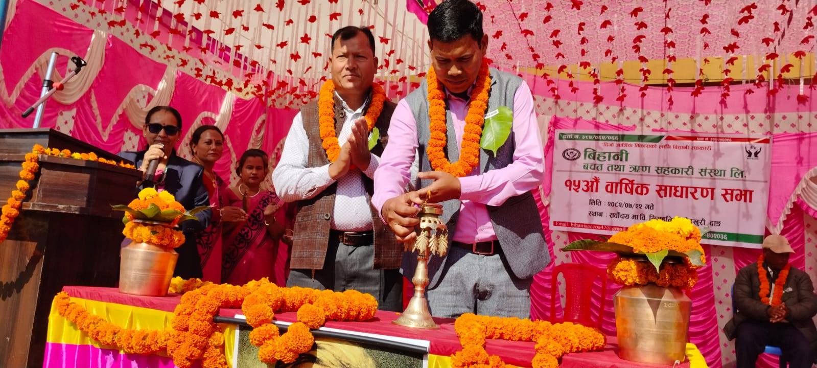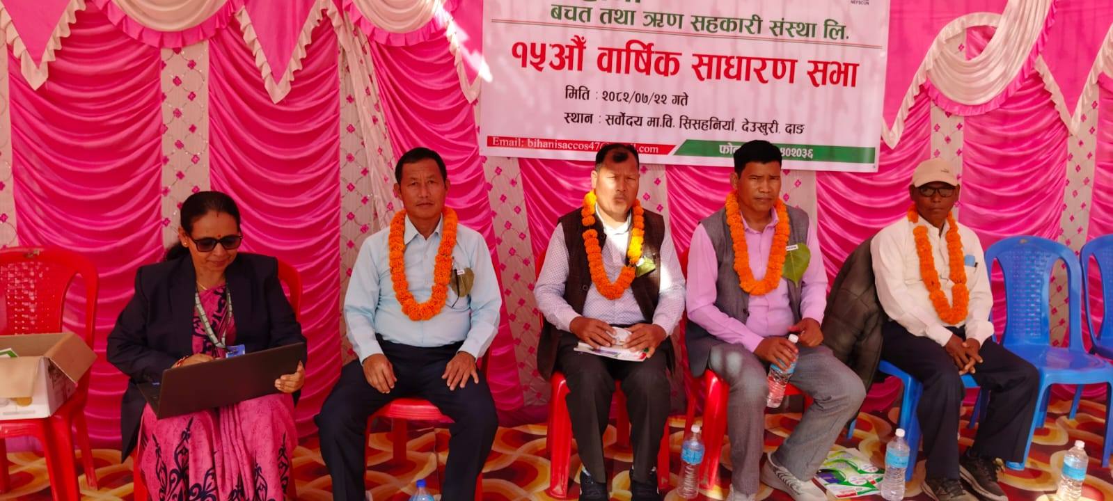 भालुवाङ २३ कार्तिक । दाङको राप्ती गाउँपालिका–५ सिसहनियाँमा रहेको बिहानी बचत तथा ऋण सहकारी संस्थाको १५ औँ वार्षिक साधारणसभा सम्पन्न शनिवार सिसहनियाँमा सम्पन्न भएको छ ।