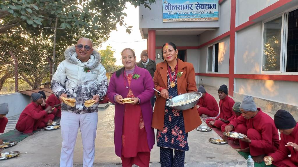 भालुवाङ ग्रिनपार्कमा सुन्दर सटिङ सुटिङ टेलरिङ्ग सेन्टर समेत सञ्चालन गर्दै आएका सुनाम दम्पत्तीले राप्ती गाउँपालिका–८ कोहलुवामा रहेको निलसागर सेवा आश्रममा रहेका सडक आश्रित मानवहरूलाई मिष्ठान भोजन स्वरूप खिर, पुरी, तरकारी खुवाएका हुन् । साथै आश्रममा फलफूल समेत प्रदान गरेका छन् । कोही नभएका भोका नाङ्गाहरूलाई थोरै भएपनि एक छाकको पेट भर्न मिष्ठान्न भोजन खुवाएको रामु सुनामले बताए । आश्रममा थोरै भएपनि मिष्ठान भोजन र फलफूल प्रदान गरेको प्रति आश्रमका कार्यवाहक अध्यक्ष गरिबु चौधरीले धन्यवाद ज्ञापन गरेका छन् । मिष्ठान्न भोजन खुवाउन स्वर्गीय मनमाया परियारका श्रीमान् खड्कबहादुर परियार, छोराबुहारी रामु सुनाम÷ सिमा सुनाम, जेठी छोरी शान्ता परियार, नातिहरू समुन्द्र सुनाम, माइकल सुनाम र पत्रकार ओमप्रकाश गुप्ताको उपस्थिति रहेको थियोे ।