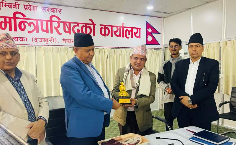 देउखुरी १० बैशाख । प्रदेश पूर्वाधार प्राधिकरणका प्रमुख कार्यकारी अधिकृत पोखरेललाई प्रशंसा–पत्र सहित बिदाई गरिएकाे छ । चार बर्षे कार्यकाल सकिएपछी पोखरेलको विदाई गरिएको हो । पोखरेलले २०७८ चैत २५ देखि २०८२ चैत २४ सम्म प्रमुख कार्यकारी अधिकृतको रूपमा प्राधिकरणमा रहेर कार्य गरेका थिए । उनको कार्यकालमा प्रदेशको पूर्वाधार विकास र विशेष गरी प्रशासनिक केन्द्र (मन्त्रालयका भवनहरू) निर्माणमा पु¥याएको योगदानको प्रदेश सरकारले उच्च मूल्याङ्कन गरेको छ ।